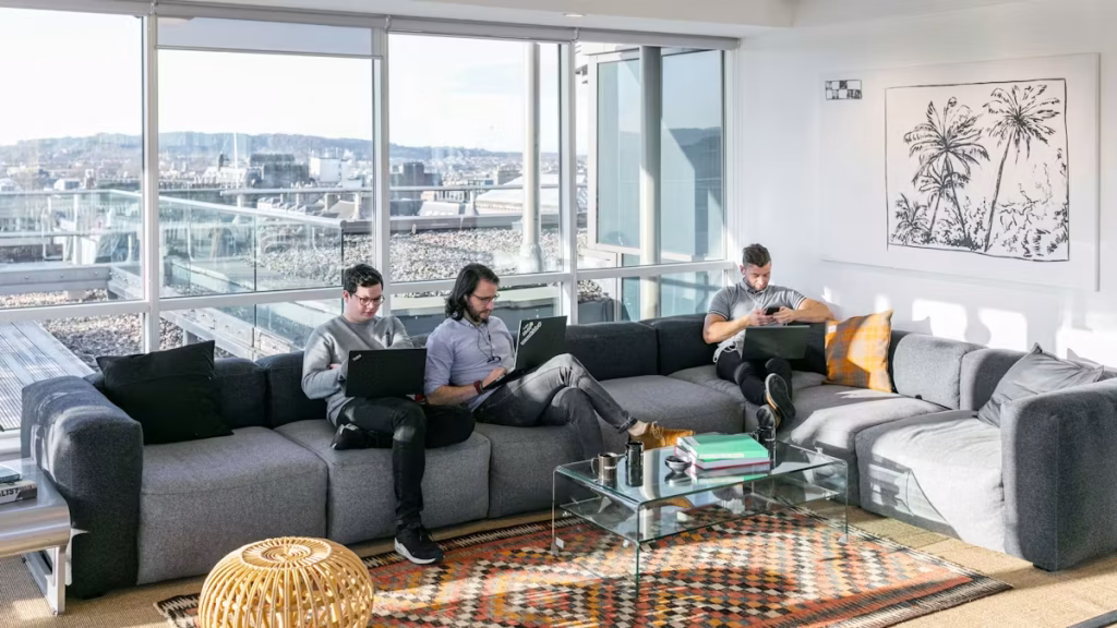 From the moment you enter the building, the atmosphere is bright, polished, and welcoming. The interior design blends warm textures, natural light, and modern furnishings to create a space that supports productivity while still feeling comfortable and relaxed. Whether you’re a freelancer, a growing team, or an established business, the workspace at 80 George Street offers a variety of options to suit your needs, including private offices, dedicated desks, and open coworking areas.